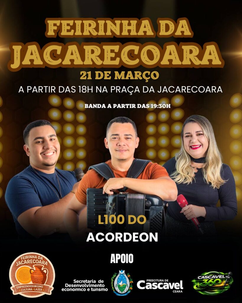 A programação será realizada a partir das 18h, na Praça da Jacarecoara, reunindo moradores, visitantes e empreendedores locais em uma noite marcada pela movimentação da economia e pela valorização dos talentos da região.